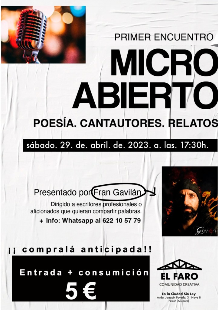 Si estás cerca de Petrer, Alicante, no puedes perderte el primer micro abierto organizado por El Faro Comunidad Creativa.