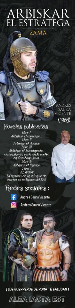 El 14 de marzo a las 18:00 tendrá lugar la presentación del libro Arbiskar el estratega «Zama», de Andrés Saura Vicente, un autor de novela histórica nacido en Cartagena en 1965. El Teatro Romano ha sido el escenario elegido para la presentación, pues es el lugar más adecuado para dar a conocer este nuevo libro que llevaban tiempo esperando todos sus lectores habituales.