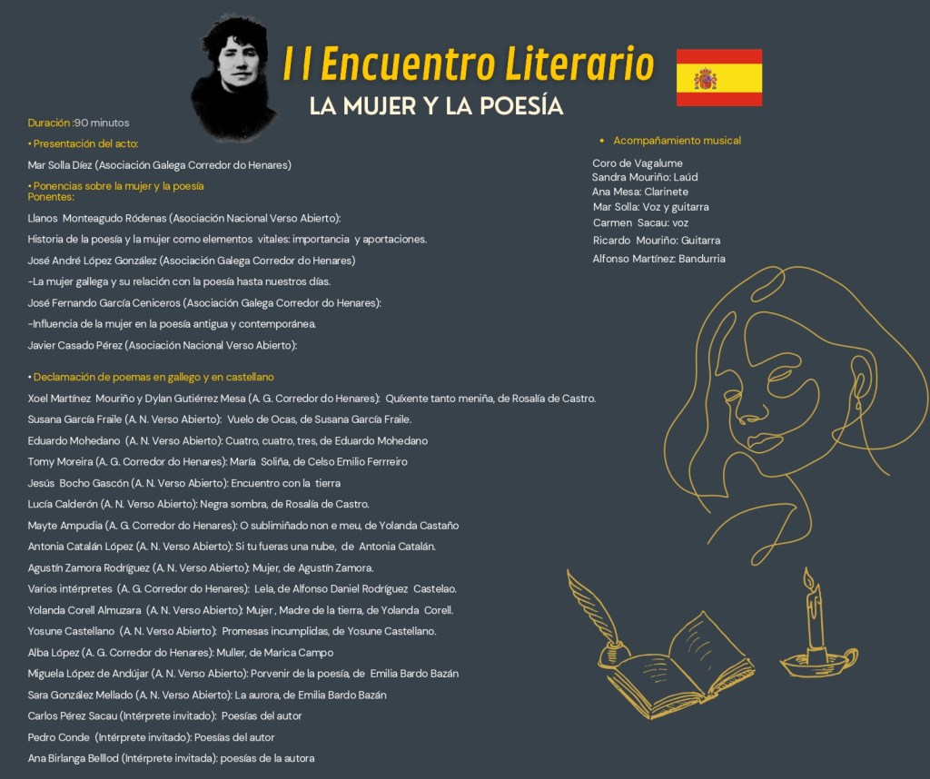 La mujer y la poesía es el nombre elegido para el encuentro de entrada libre organizado entre dos asociaciones: Asociación Galega Corredor do Henares y Asociación Nacional Verso Abierto.