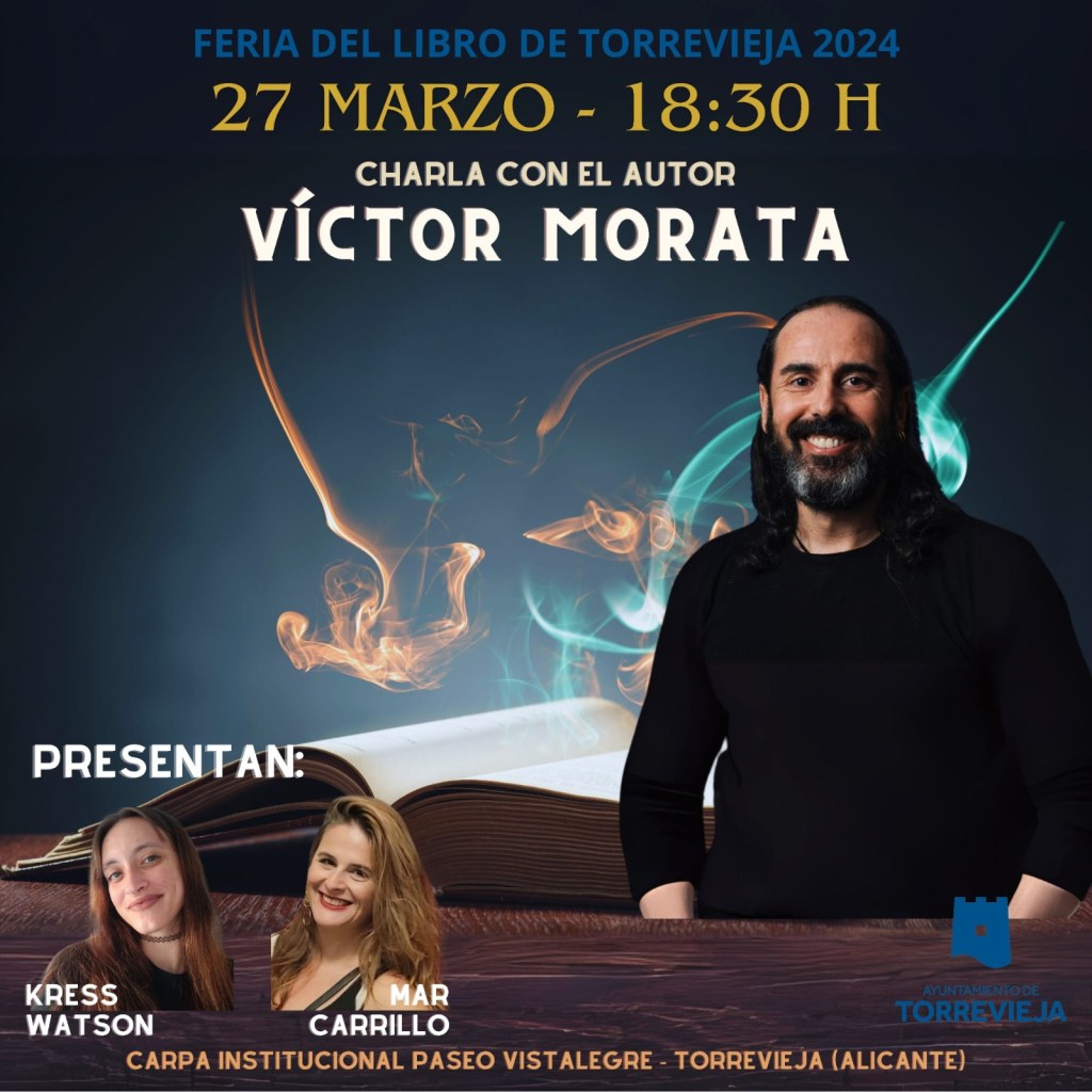 El día 27 a las 18:30 le tocará el turno a Víctor Morata Cortado. Escritor pinatarense que comenzó su carrera literaria escribiendo relatos cortos en diferentes revistas como Ágora, Gárgola, Marea, ECHO, Voces y los dos primeros números del fanzine de Horror Hispano,Insomnia, Logogrifo, El País Literario o Transparencias. También ha sido colaborador en diferentes webs literarias como las deH-Horror.com, culturahache.com, El Café del Autor, properaparadacultura.blogspot.com, ylajungladelasletras.com. Es codirector y presentador del Podcast FICCIÓPATAS junto al escritor Eric Luna que se emite cada domingo en diversas plataformas.