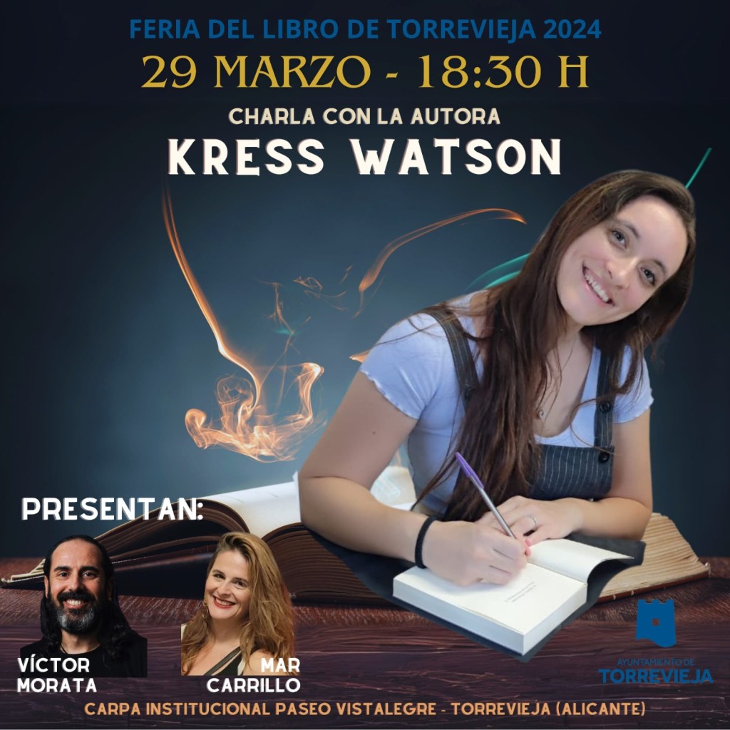 Por último, el día 29 a las 18:30 la Feria del Libro recibirá a la autora torrevejense Cristina Moreno , más conocida literariamente como Kress Watson.